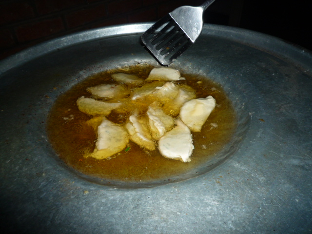 サツマイモを揚げている。これがおいしい!1個5kw!2.5円!2個食べれば満腹。
