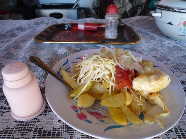 青い袋は油で溶けてジャガイモオムレツが完成するわけ。