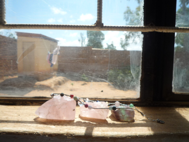 次の日、もらったローズクオーツと買った石と私の守りブレスを日光浴させて