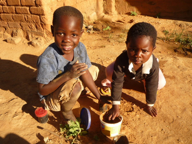 そして私が昔遊んだように泥水でおままごとをする子供。