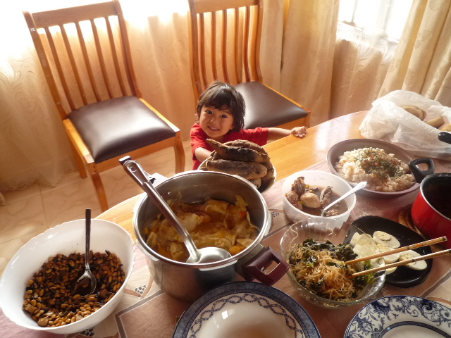 この日の夜ご飯はサッカーに行かなかったみほちゃんとじゅりちゃんが